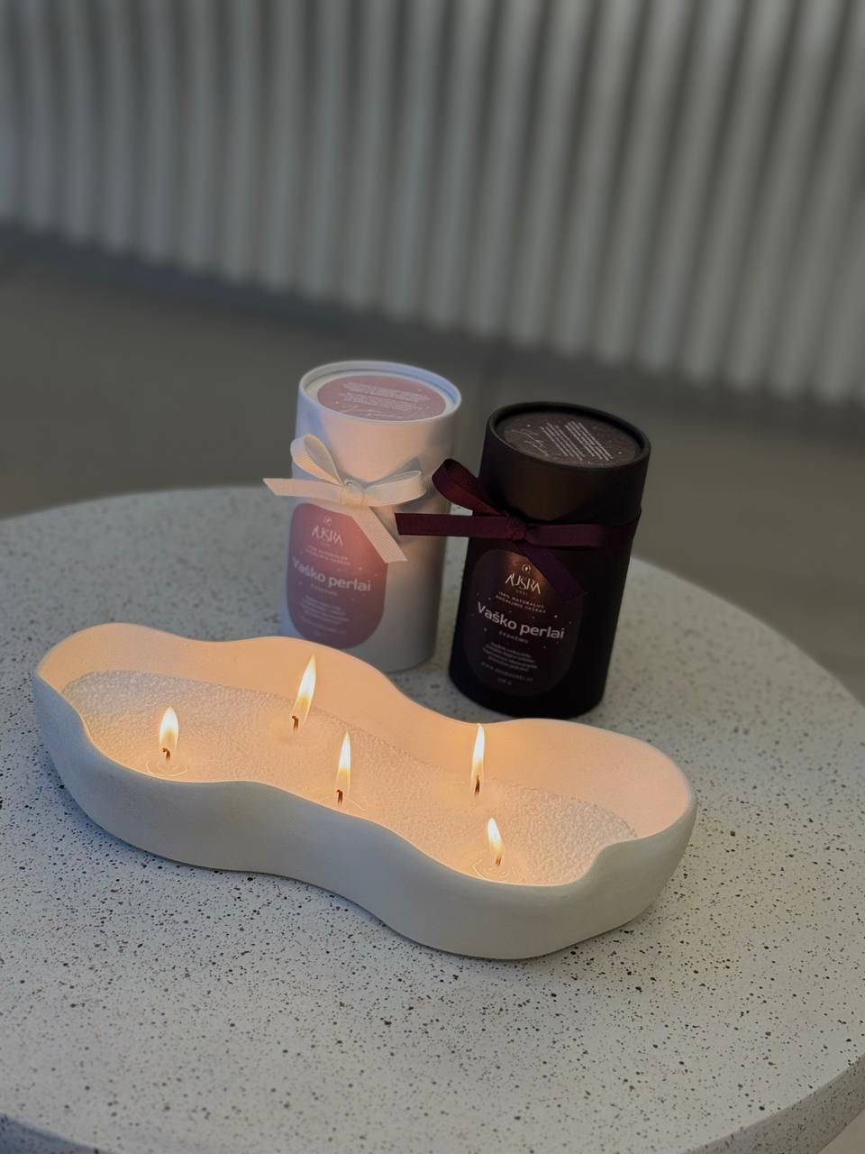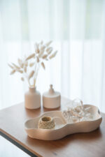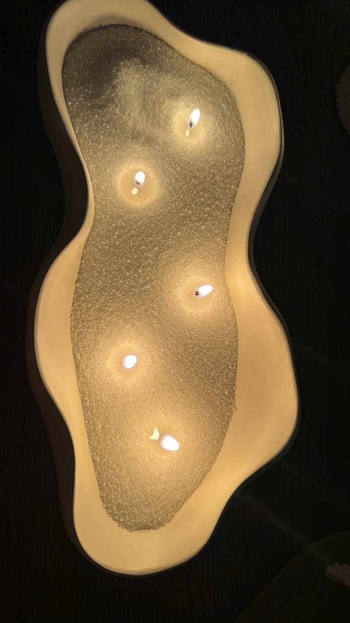 Banguotas padėklas, rankomis pagamintas iš balto gipso. Jo unikalus banguotas dizainas išsiskiria šiuolaikišku rafinuotumu, todėl jis yra universalus ir stilingas bet kurios erdvės priedas. Pridėkite elegancijos ir funkcionalumo savo namams.