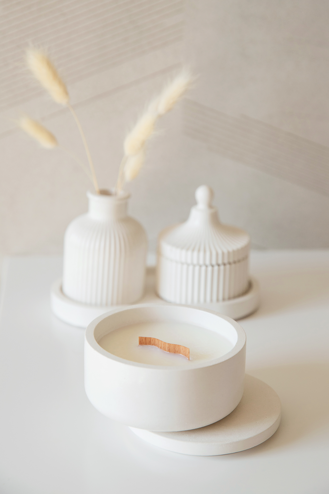 Užpilta ekologišku kokosų vašku ir iškvėpinta aukščiausios kokybės aromatiniais aliejais. Švelnus medinės dagties traškėjimas suteikia jūsų erdvei raminančią ir natūralią atmosferą, primenančią jaukų židinį.